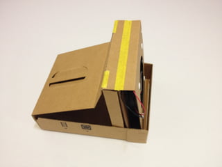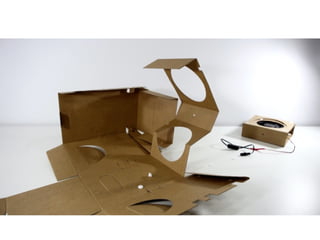 은 수십만원짜리 제품과별 차이가 없습니다.” 표시선에 따라 골판지를 접고 그 안에 공기 필터와 지름 20㎝가량의