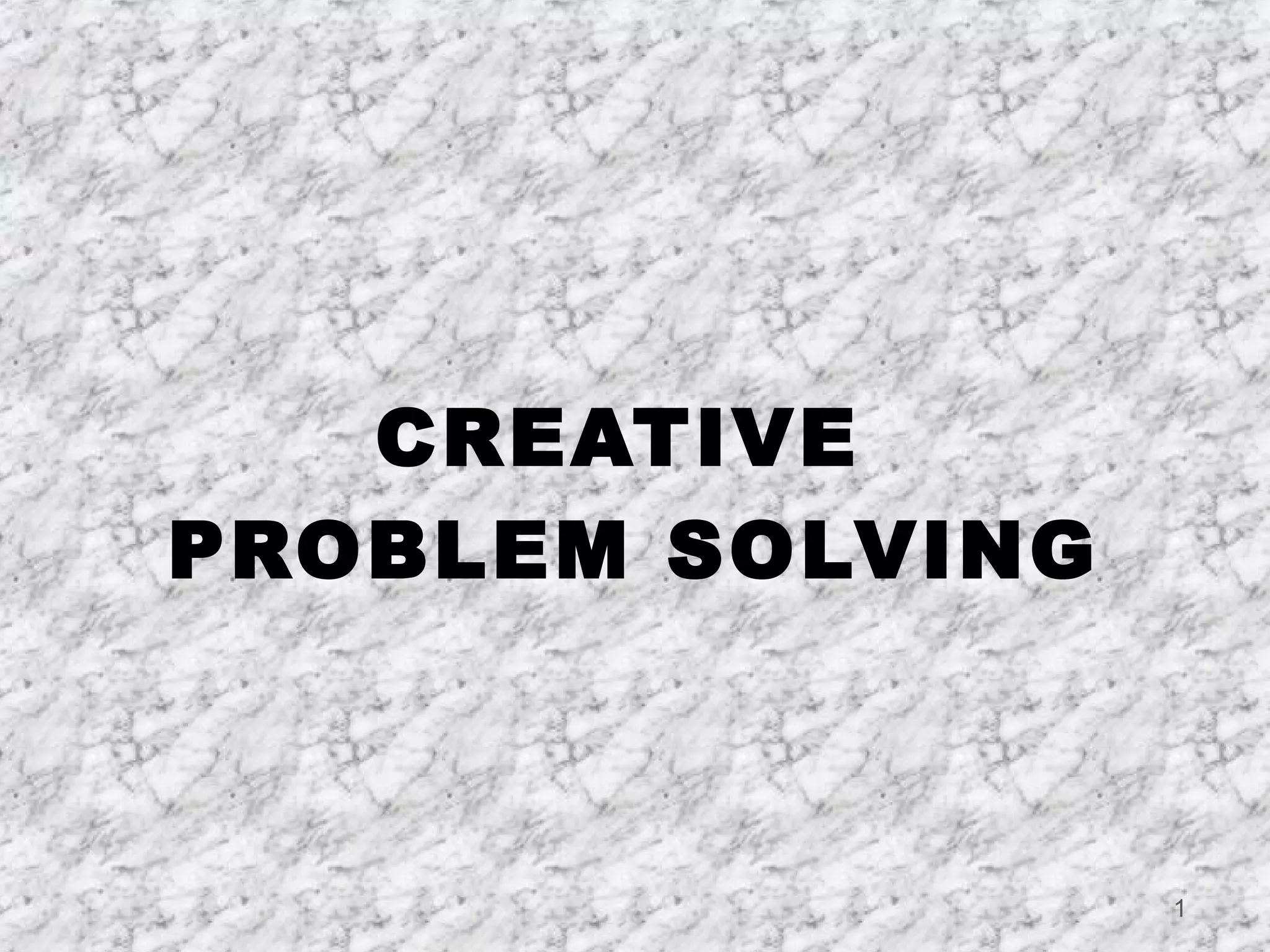 This document outlines a creative problem solving workshop. It discusses defining creative problem solving, common mental blocks to creativity, ways to be more creative, and the creative problem solving process. The process involves stating the problem, gathering facts, restating the problem, identifying alternative solutions, evaluating alternatives, implementing a decision, and evaluating results. Specific creative problem solving tools covered include brainstorming, mind mapping, and multivoting. The overall purpose is to develop awareness and skills for creatively solving problems.