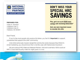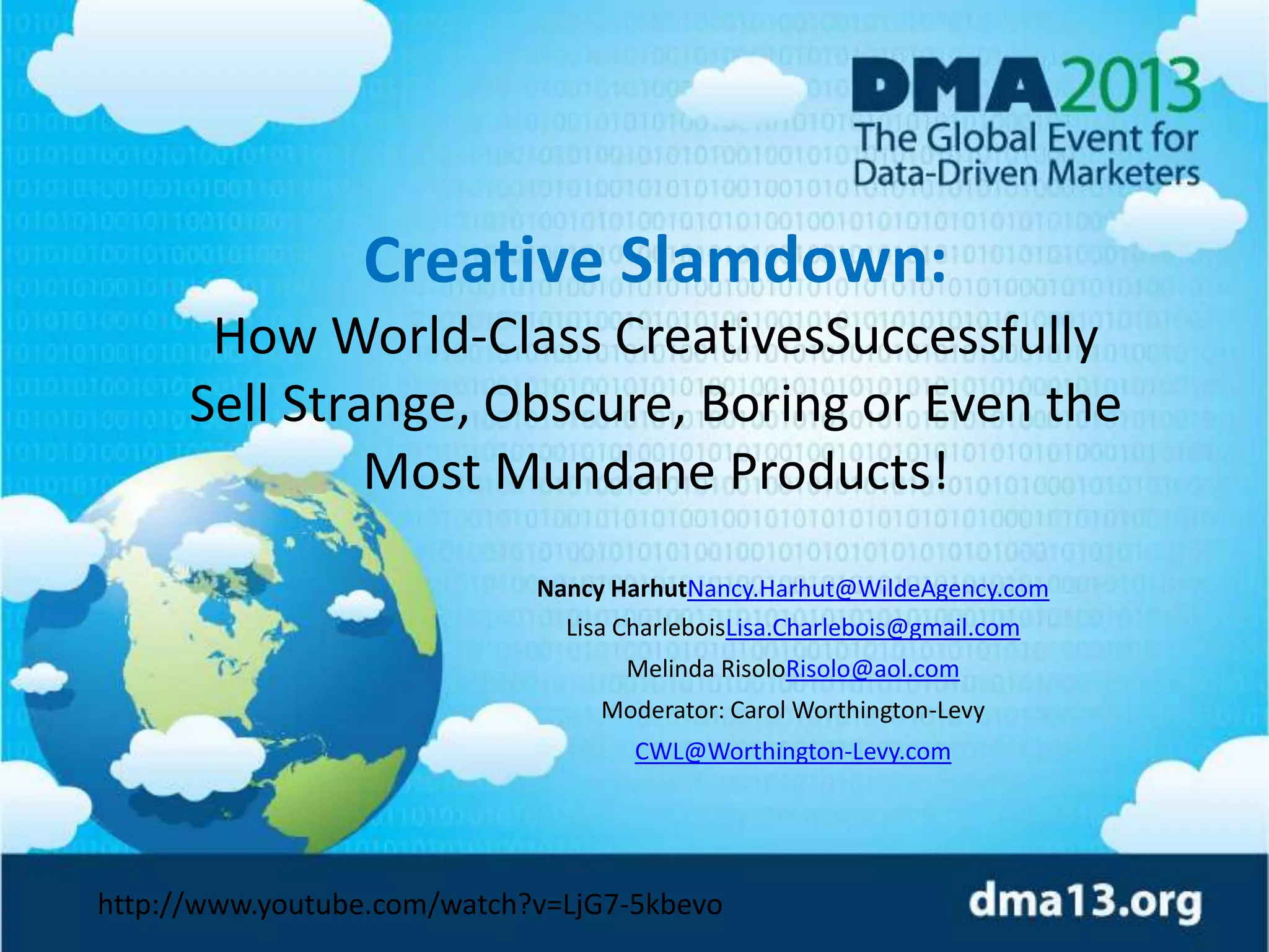 Nancy Harhut, Lisa Charlebois, and Melinda Risolo presented creative campaigns they developed to sell challenging products. Nancy increased sales of auto insurance to an LGBT affinity group by highlighting the insurer's support for equal rights causes. Lisa promoted a business management software solution for SMBs by emphasizing benefits without technical jargon. Melinda significantly boosted response to cancer insurance by avoiding fear-inducing language and focusing on financial protection with no product details. The moderator asked the audience to applaud for their favorite campaign.