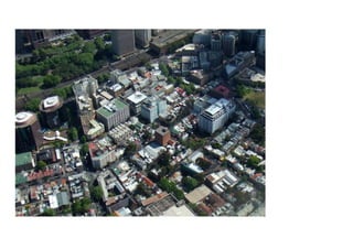 The document discusses the creative industry landscape in Sydney, highlighting the concentration of digital arts and film in specific areas like Surry Hills. It critiques current urban planning practices for promoting homogeneity and lack of diversity in development, which stifles creativity and vibrancy. The author advocates for a more mixed-use, fine-grained approach to urban renewal that allows for varied ownership and community involvement to foster authentic and dynamic environments.