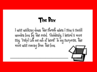 5) A story involving a character who finds a boy in a box who leaves a