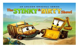 The document discusses the children's cartoon series "The Stinky and Dirty Show". It describes how the show teaches children problem-solving skills through the adventures of Stinky the garbage truck and Dirty the backhoe loader. They model approaches like understanding problems, learning from mistakes, changing perspectives, visualizing solutions, brainstorming with others, and testing prototypes. The show was praised for its ability to engage children in creative problem-solving.