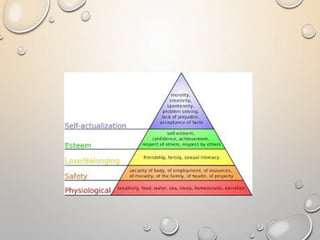 The document discusses creativity as a form of self-expression. It defines creativity and explores historical perspectives on creativity in education. Key figures like Carl Rogers and Abraham Maslow believed individual creativity is a form of self-expression. Rogers argued that denying creativity can lead to personality deficits. He felt people need freedom to experience and accept their feelings fully. Maslow linked self-actualization and creativity, seeing creativity as a process of personal development. The document advocates creating psychologically safe environments that encourage curiosity and foster personal growth, self-esteem, and motivation to support learner creativity.