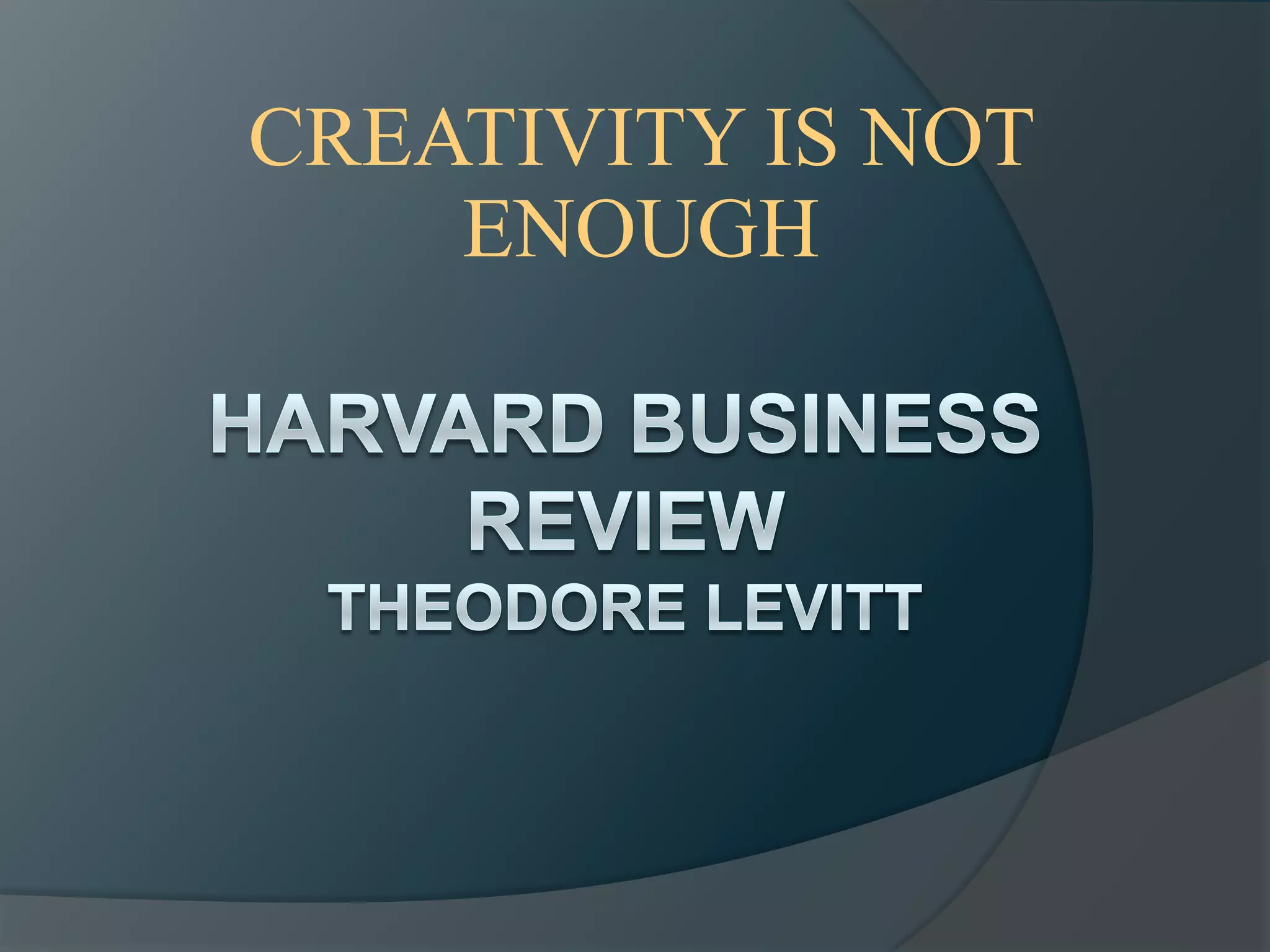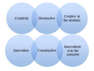 Creativity is not enough on its own and must be accompanied by implementation to become innovation. While creative ideas are plentiful, following through on implementation is scarce. The Tata Nano car is presented as a case study of turning an idea into innovation by addressing customer needs, using a target cost approach, and breaking myths about affordable cars. Creative people are often sought for advice but don't take responsibility for implementing ideas. Discipline and addressing practical realities are important to transition creativity into useful innovation.
