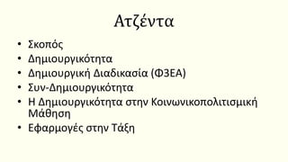 • Η Δημιουργικότητα στην Κοινωνικοπολιτισμική