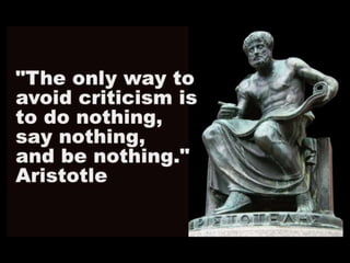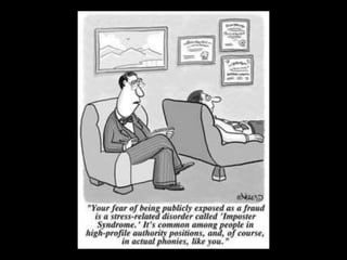 This document discusses the creative process for writers. It covers topics like understanding your creative process through your personality type, archetypes, and blind spots. It discusses developing the core conflict in your story using a conflict box. It also addresses challenges like fear, the imposter syndrome, and how to develop courage to overcome obstacles to the creative process.