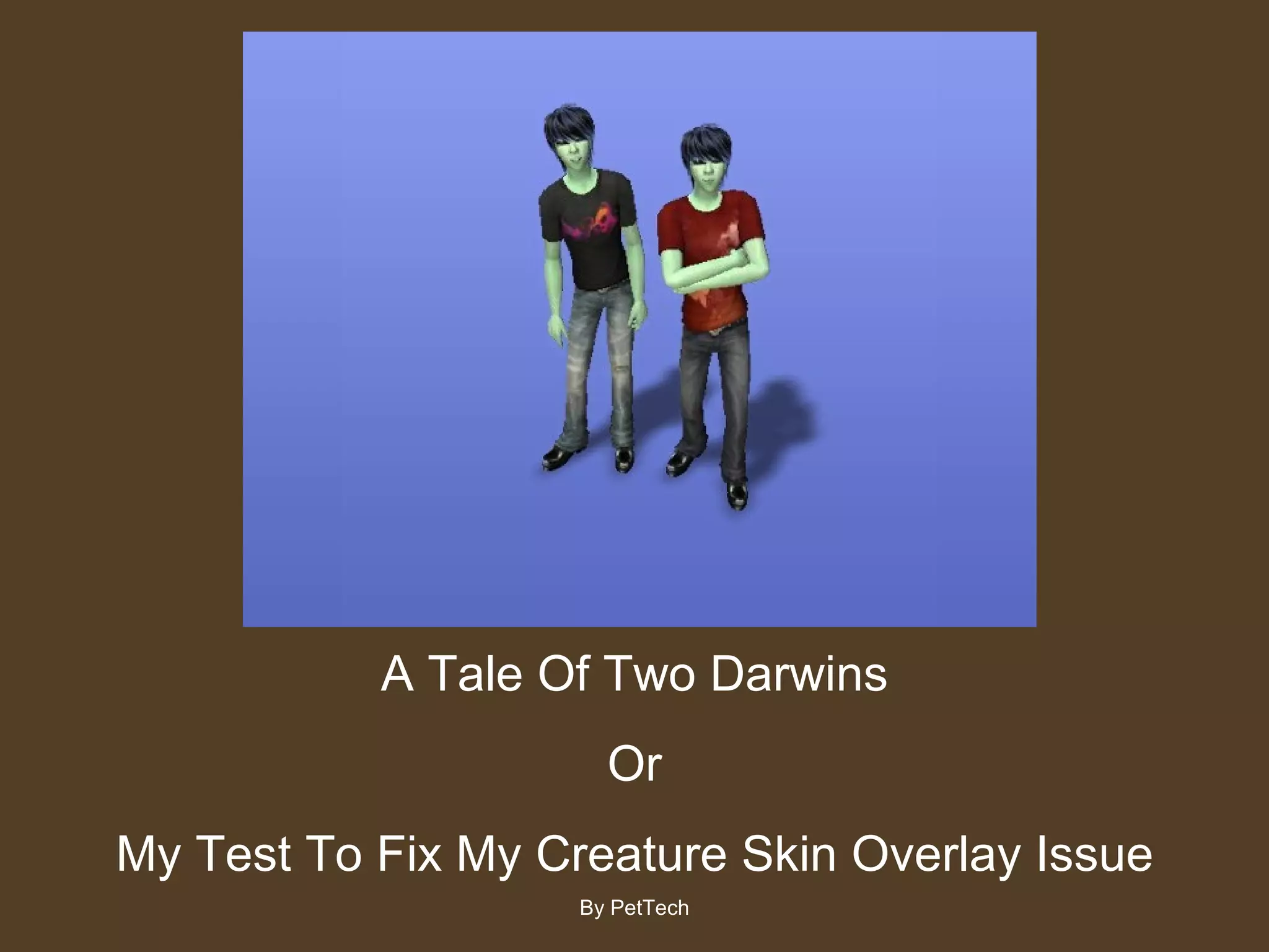 1) The document describes a test conducted by a sim writer to determine if the order of transformations (e.g. vampire, werewolf) causes skin overlay issues with her sim.