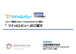 とは? 「ツイっとレビュー」は、サイト内に投稿されるレビューをTwitter/Facebookと連動すると共に、