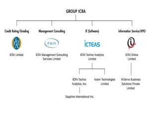 Credit ratings evaluate a debtor's ability to repay debt and the likelihood of default. They are assigned by credit rating agencies and provide an objective opinion on an issuer's financial obligations. India's first credit rating agency, CRISIL, was established in 1987 and the first private rating agency was Duffs & Phelps Credit Rating India in 1995. Credit ratings use methodologies including business, financial, management and fundamental analysis to assess issuers and establish a link between risk and return for investors.