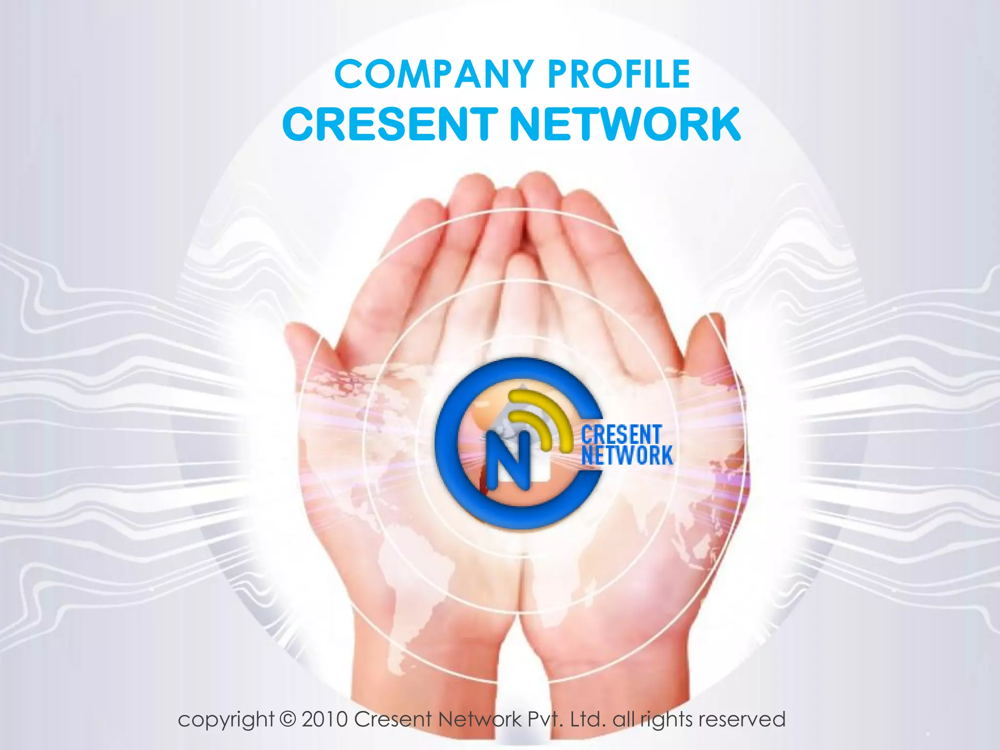 The document provides information about Cresent Network Pvt. Ltd., an Indian IT and media company. It summarizes that Cresent Network was established in 2009 to enter the crowded IT and media fields. It operates across various business verticals including IT services, web media, marketing consultancy, HR outsourcing, and ITES. The company aims to establish itself as a leading business consulting group globally and to provide professional services to clients, employees, and stakeholders.