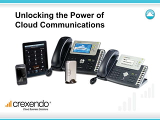 Crexendo is a publicly traded company headquartered in Tempe, AZ that provides web design, development, hosting, and telecommunications services. It has over 14,000 customers, 125 employees, and leadership with over 200 years of combined industry experience. The cloud communications market is growing significantly as more businesses move phone systems and IT infrastructure to the cloud to gain efficiencies, cost savings, and mobility. Crexendo offers cloud-based phone systems, web services, and network solutions to help businesses transition to the cloud.