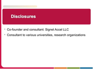 This document outlines a presentation by Peter J. Embi regarding a literature review of clinical and translational research informatics published between January and February 2014. It highlights key findings from 34 representative articles across several categories, including clinical data reuse, data sharing, methods in clinical research informatics, and associated policy trends. The document emphasizes the importance of aggregated electronic health record data for pharmacosurveillance and the need for robust frameworks to support clinical data reuse for research.