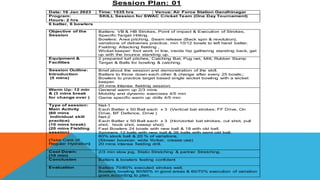The document outlines a series of training session plans for a cricket team, detailing objectives, equipment, and activities tailored for batters, bowlers, and fielders from January 16 to January 24, 2023. Each session includes warm-ups, skill practices, simulations, and cool-downs, with specific focuses on individual techniques and team strategies. Feedback and self-reflections are documented to improve future sessions.