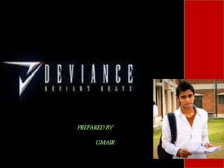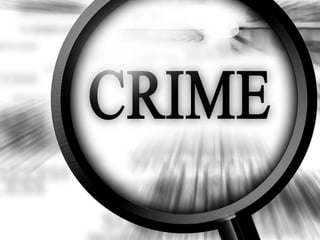 This document discusses the topics of deviance, crime, and patterns of criminal behavior from a sociological perspective. It defines deviance as violating social norms and crime as breaking formal laws. It outlines two types of deviance - informal and formal - and provides examples. Characteristics, social control, and theories related to deviance are also examined. The document then contrasts crime and deviance, defines elements of a crime, and categorizes different types of criminal acts. Demographic patterns of crime are analyzed in relation to sex, age, socioeconomic status, and race. Crime on a global scale is also briefly discussed.