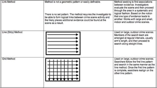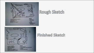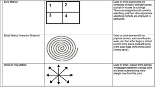 Crime scene management involves defining, classifying, documenting and processing crime scenes systematically. It is important to recognize and secure the primary and secondary crime scenes. The first responding officers should assess the scene safety and record initial observations. Crime scene investigators then search and collect evidence according to established protocols while maintaining chain of custody. Reconstructing the crime through analysis of evidence helps determine what events could have occurred. Other roles include investigation by police, judicial proceedings and medical examination to determine cause and manner of death.