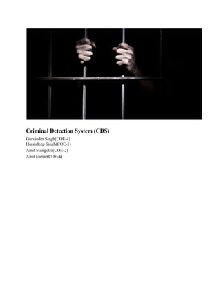 The document outlines the development of a Criminal Detection System that utilizes facial recognition algorithms to identify individuals from images. It details the motivation, methodologies, and technologies used, focusing on neural networks and various algorithms like PCA and MPCA-LDA to enhance accuracy in face detection under diverse conditions. The approach aims to create a robust and user-friendly system for security applications in high-traffic environments.