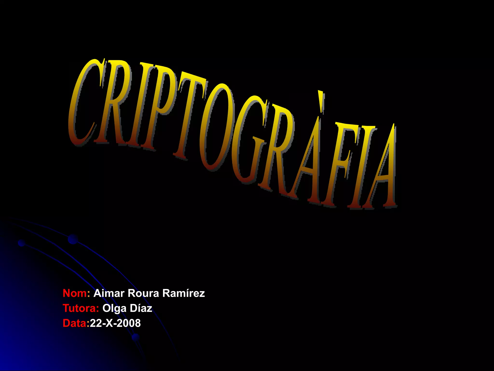 Nom : Aimar Roura Ramírez Tutora: Olga Díaz Data : 22-X-2008 CRIPTOGRÀFIA