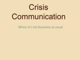 This document discusses crisis communication strategies used by Maple Leaf Foods during a 2008 listeria outbreak. It provides details of Maple Leaf's initial response, including product recalls and notifications. Maple Leaf's CEO issued a public apology. Media coverage became more positive as Maple Leaf was seen as proactive, transparent, and accountable. The long-term strategies helped rebuild trust. Lessons include having an effective crisis plan and trusted spokespeople to ensure timely, authentic messaging during a crisis.