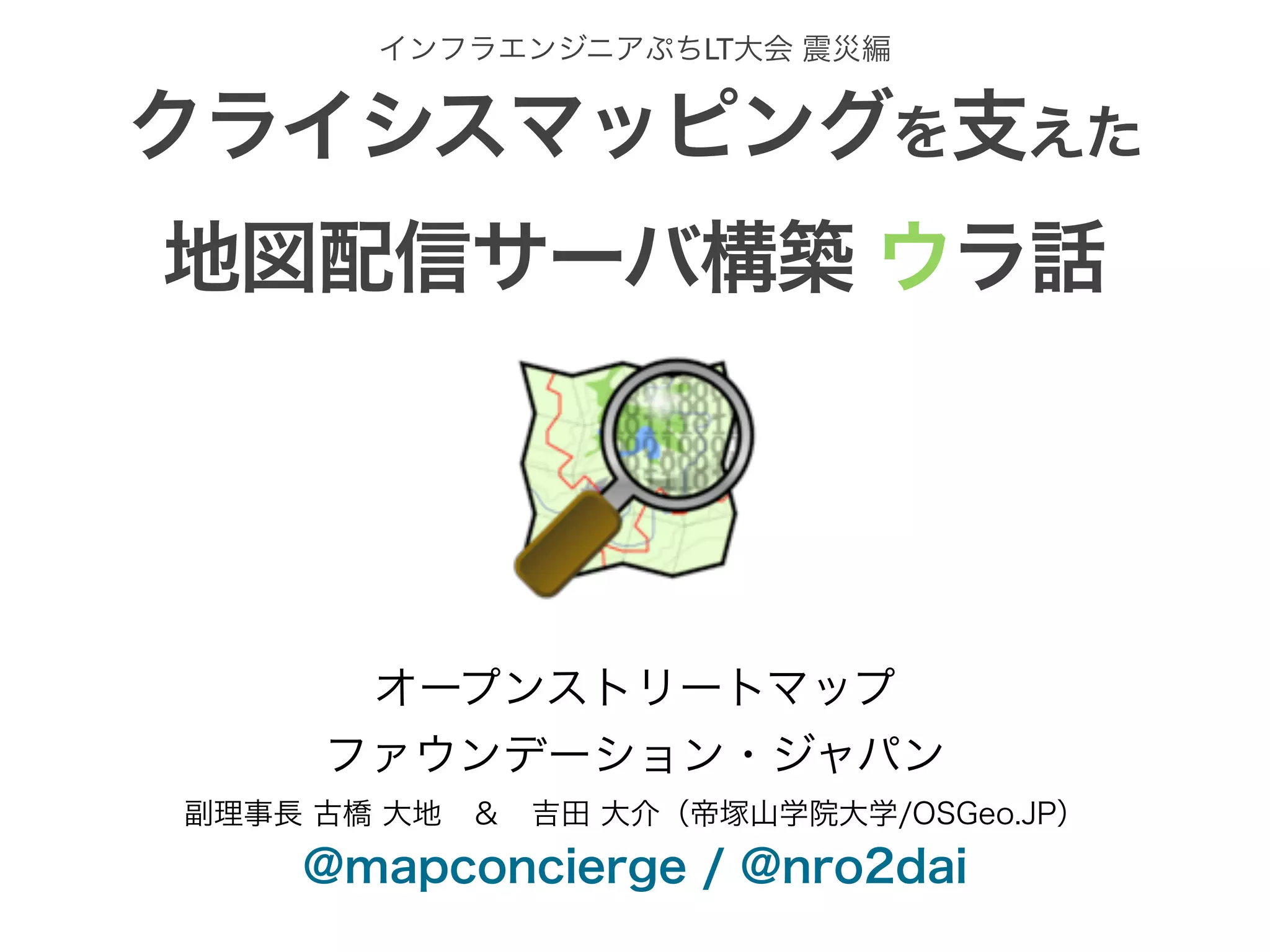 The document discusses using OpenStreetMap (OSM) to map areas in response to natural disasters. It provides examples of how OSM was used after the 2010 Haiti earthquake and 2011 Japan earthquake and tsunami. It outlines how OSM data is collected through tools like GPS, aerial imagery, and local knowledge. The document promotes contributing to OSM to build free maps that can help relief efforts and preparedness for future disasters.