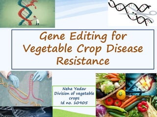 This document discusses the use of CRISPR/Cas9 technology for genome editing in cucumbers to develop virus resistance by targeting the eif4e gene. The study outlines experimental procedures, results, and the potential of genome editing to create improved crop varieties faster and more cost-effectively than traditional breeding. It concludes that these advancements offer safe options for food production amid increasing global demand.