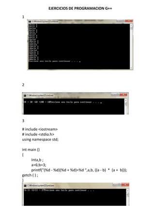 This C++ program defines two integer variables a and b, assigns values to them, performs calculations on them using subtraction and addition, prints the result to the screen, and waits for a key press before exiting. It includes the iostream and stdio.h headers, uses namespace std, defines the main function which declares and assigns values to the integers, performs the calculations, prints the result using printf, and uses getch to wait for input before ending.
