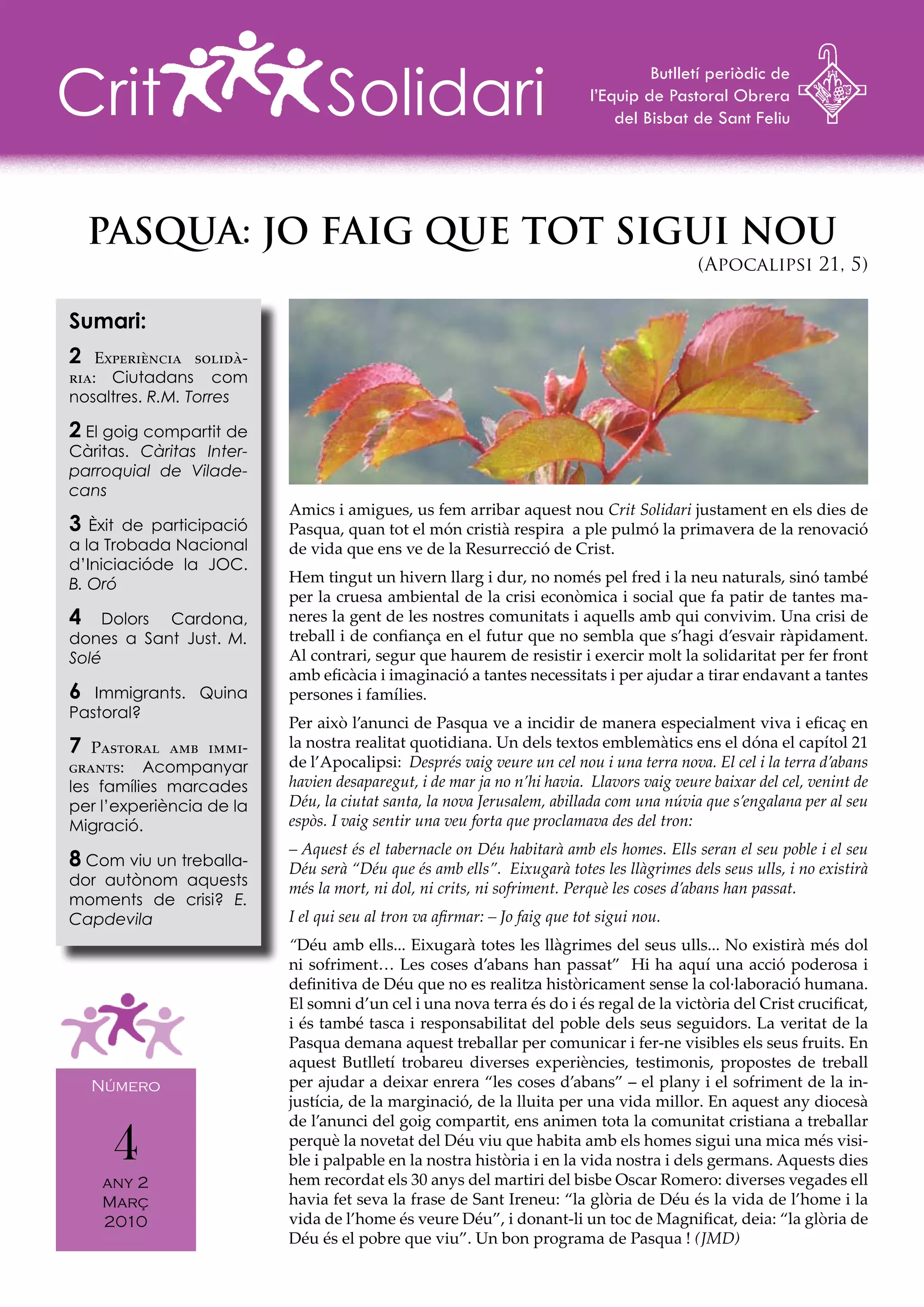 Amics i amigues, us fem arribar aquest nou Crit Solidari justament en els dies de