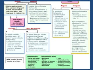 3) Examples of cardiac rhythms and ACLS treatment algorithms, with questions to test recognition and appropriate interventions.
