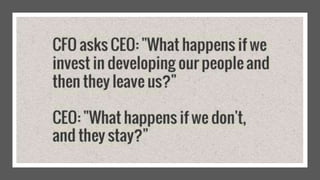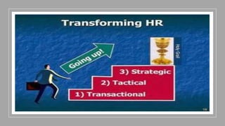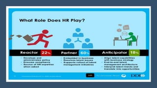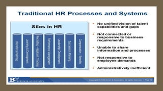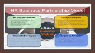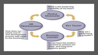 This document provides an overview of a two-day training program on critical human resources management priorities. The program consists of four workshops covering strategic talent management, leadership development, strategic learning and development, and employee engagement. Workshop one focuses on strategic talent management and HR business partnering. Workshop two covers leadership development components, models, and strategies like succession planning and mentoring. Workshop three defines strategic training and development and identifies factors and a maturity model.