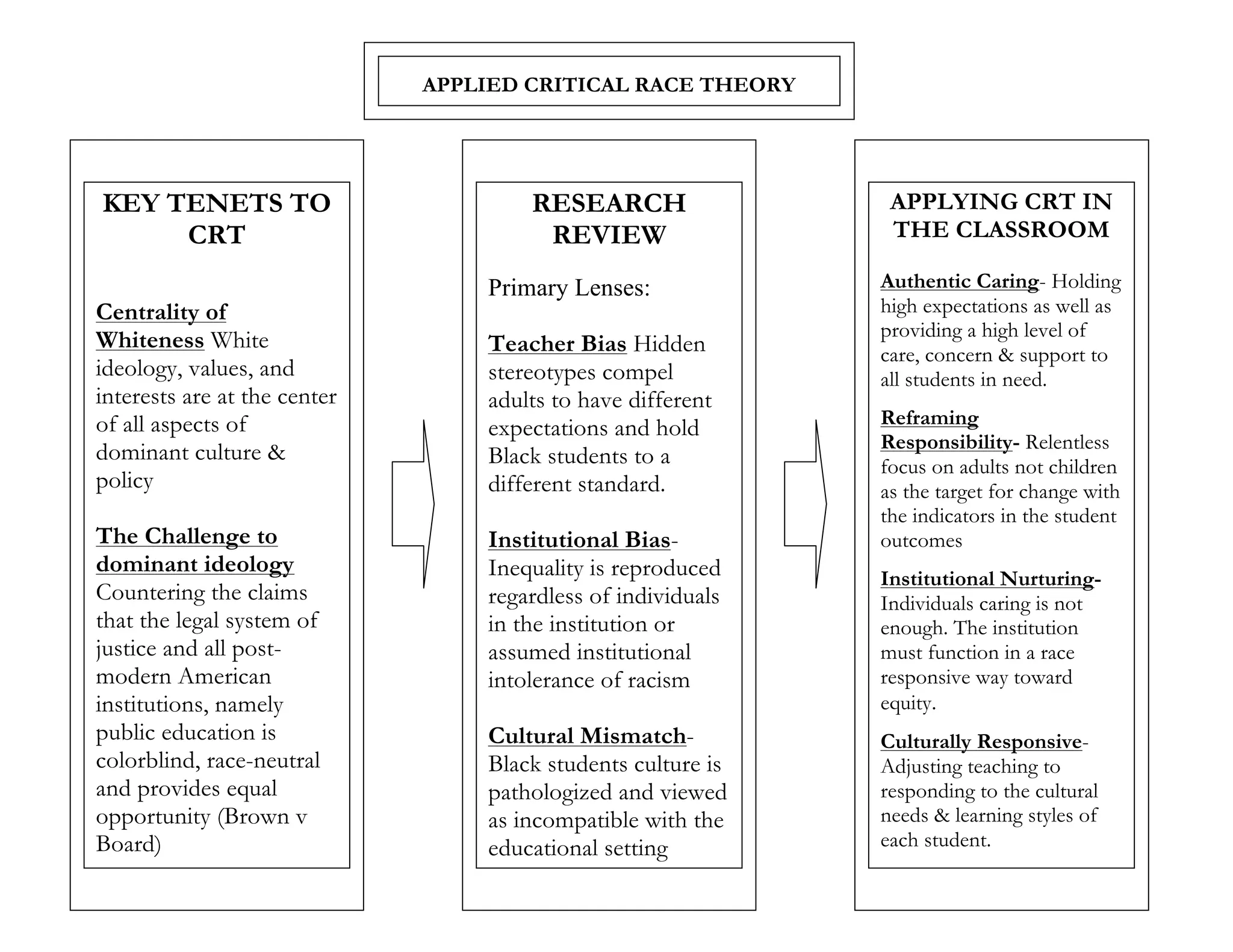 This document summarizes key concepts from critical race theory and how it can be applied in education. It outlines that critical race theory positions whiteness and white ideology as central to culture and policy, challenging claims of neutrality and equal opportunity. It also discusses how institutional and cultural biases can negatively impact students of color through hidden stereotypes, unequal treatment, and viewing their cultures as incompatible. The document proposes applying critical race theory through culturally responsive practices, high expectations for all students, and addressing inequities at both the individual and institutional level.