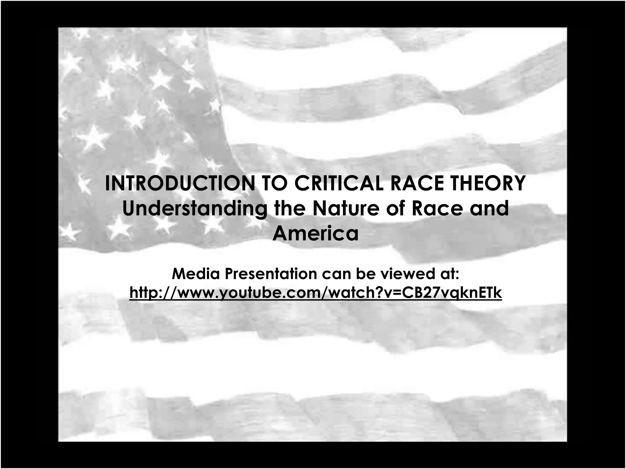 This document provides an introduction to critical race theory. It outlines some of the key concepts, history, theorists, and themes of CRT. The document discusses how CRT developed out of the civil rights era to examine the relationship between law and racial power. It presents enduring understandings of CRT, such as the idea that racism is endemic in American society and legal neutrality is skeptical. The document also introduces several influential critical race theorists and their areas of expertise and research focusing on issues like intersectionality, counterstorytelling, and examining power dynamics around dialogue and narrative.