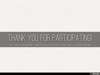 The document lists the names of 22 photographers credited for various photos, including rishibando, Sarah Ross photography, Swami Stream, and Michael Dales. It ends by prompting the reader to create their own presentation on SlideShare, suggesting they may have been inspired by the photos mentioned.