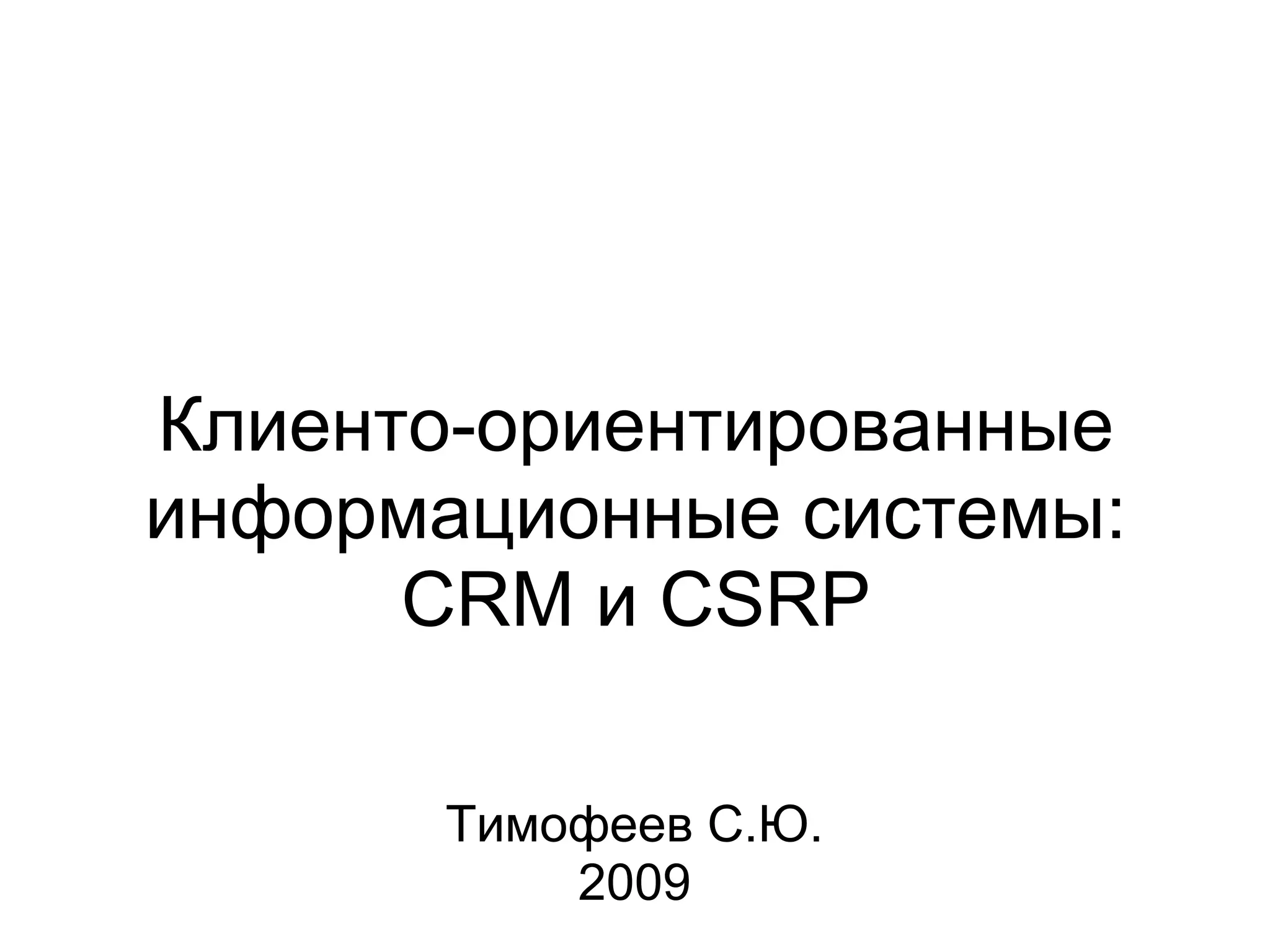 Документ посвящен клиенто-ориентированным информационным системам, в частности CRM и CSRP. Он охватывает предпосылки и бизнес-стратегии для внедрения CRM, а также предоставляет информацию о функциональности и типах CRM-систем. Включает практические примеры и кейсы внедрения, подчеркивая важность интеграции клиентских данных и внутренних процессов компании.