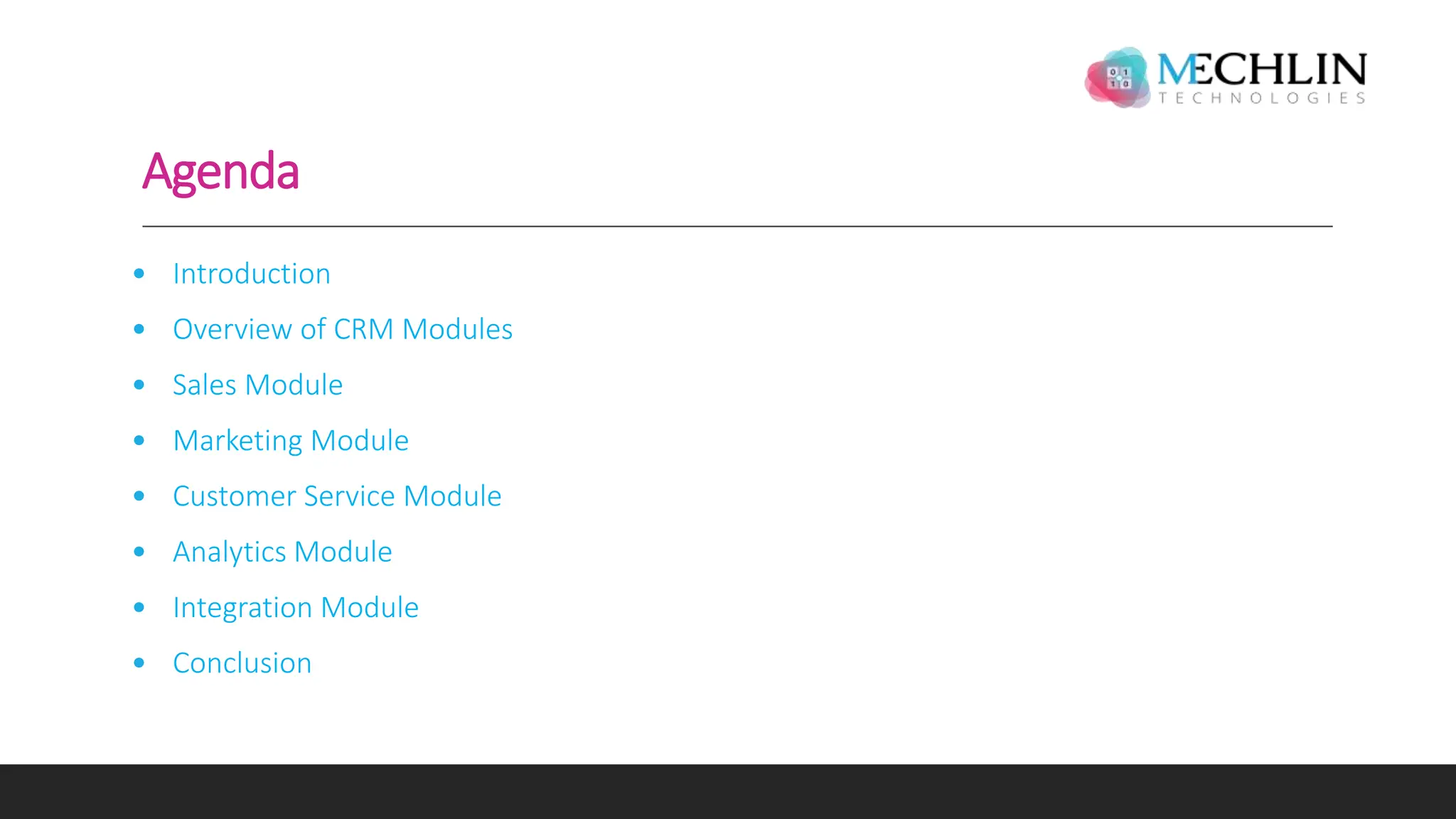 The document provides an overview of customer relationship management (CRM) modules, highlighting their purpose, benefits, and key components such as sales, marketing, customer service, analytics, and integration. Each module offers specific advantages, like improving sales tracking, enhancing marketing efficiency, and streamlining customer service operations. The conclusion stresses that effective implementation of these modules can significantly benefit a business.