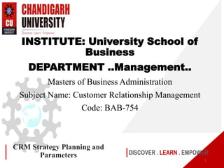 The document discusses the key building blocks of a successful customer relationship management (CRM) strategy. It outlines eight building blocks: 1) CRM vision, 2) strategy, 3) valued customer experience, 4) organizational collaboration, 5) CRM processes, 6) CRM information, 7) CRM technology, and 8) CRM metrics. For each building block, the document provides details on what organizations should consider to develop an effective CRM strategy, including understanding customer needs, creating a customer-centric culture, collecting and analyzing customer data, and continuously improving processes. It also discusses challenges of CRM adoption and moving from a product-focused to customer-centric approach.