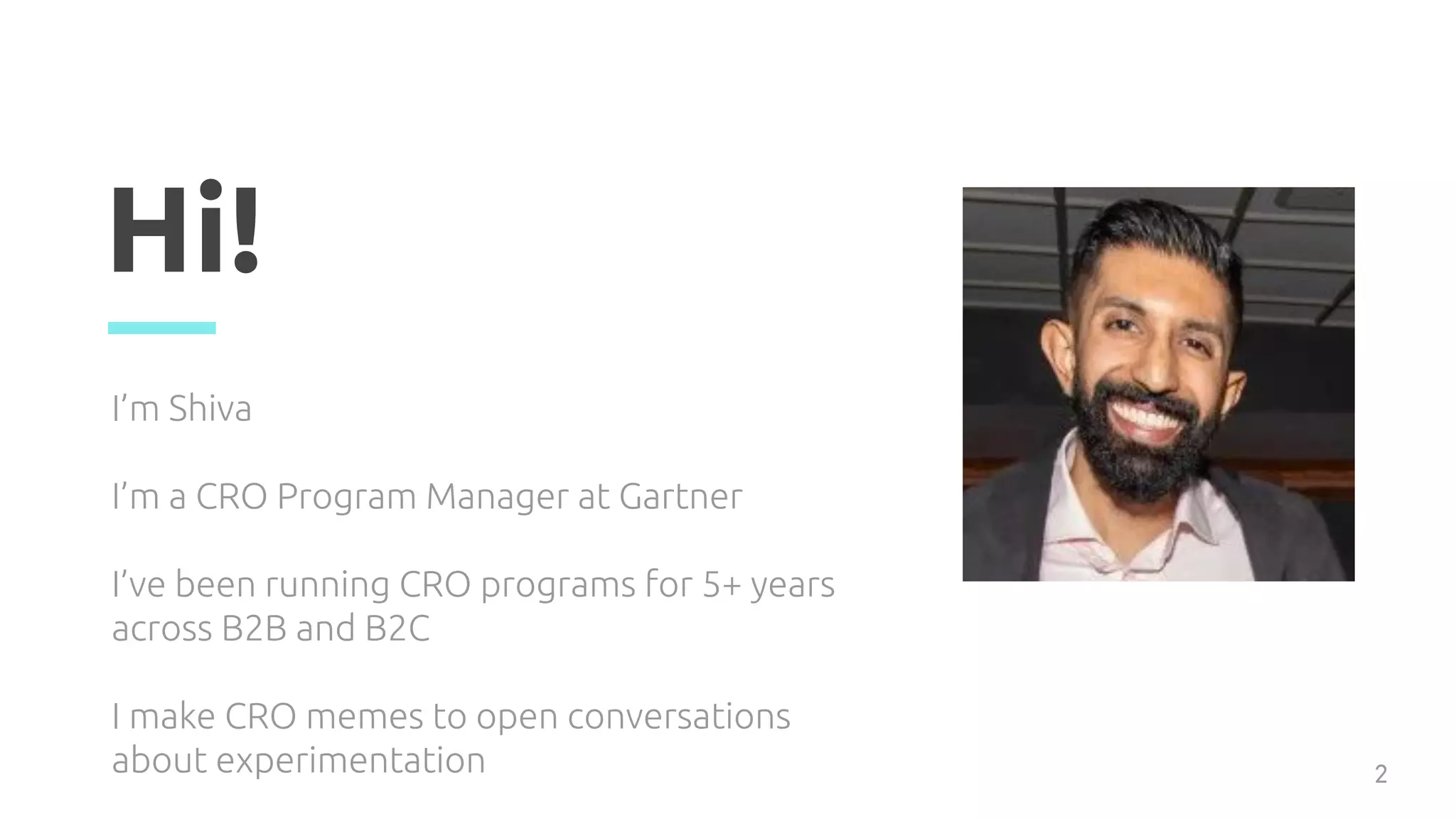 Shiva Manjunath discusses optimizing Conversion Rate Optimization (CRO) programs for effectiveness, emphasizing the importance of experimentation beyond just testing to win. He advocates for continuous collaboration across departments like UX and Marketing to enhance insights and unify customer journeys. The document highlights the value of focusing on learning from tests, using data-driven strategies, and ensuring that metrics accurately reflect user behavior.