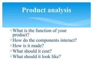 This document discusses selecting materials for a product called the Crocodile Tash Project. It outlines questions to consider regarding the product's function, components, manufacturing process, cost, and appearance. It also provides charts on material properties like Young's Modulus, density, cost, electrical and thermal properties to aid in choosing suitable materials like wood or steel. The document prompts selecting manufacturing processes based on the chosen materials and assessing technical performance and cost.