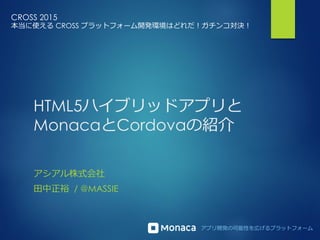アプリ開発の可能性を広げるプラットフォーム HTML5ハイブリッドアプリと MonacaとCordovaの紹介 アシアル株式会社 田中正裕 / @MASSIE CROSS