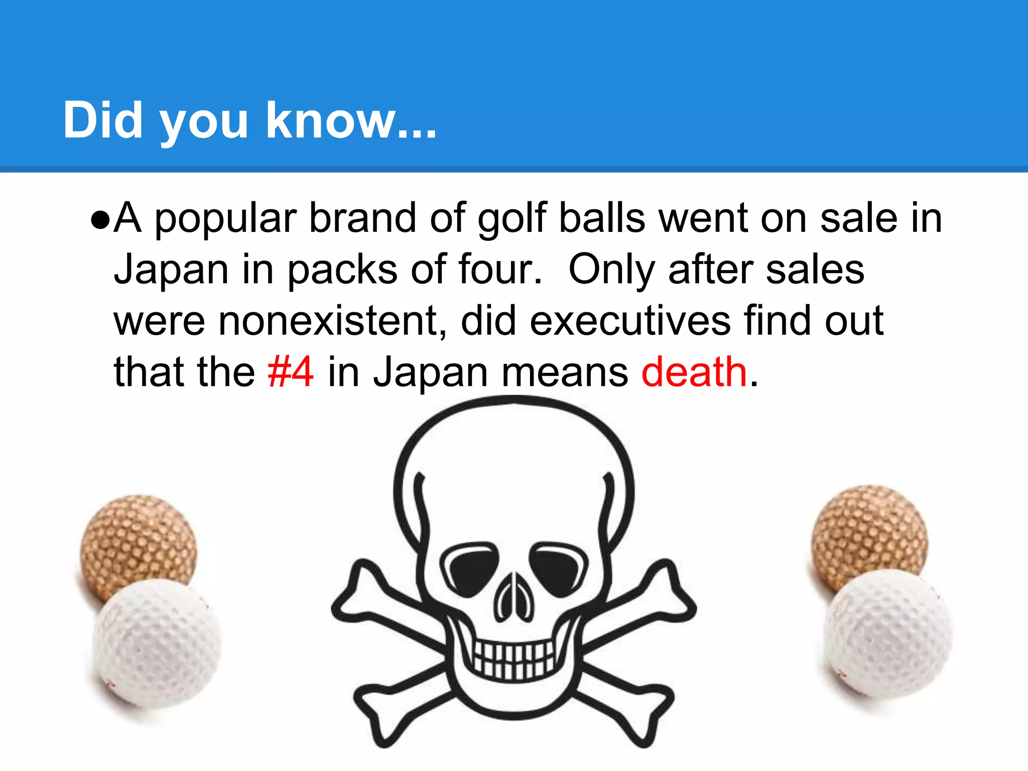 This document discusses the importance of cross-cultural sensitivity in healthcare. It provides examples of how seemingly small cultural differences, like the number 4 in Japan, can cause misunderstandings. It emphasizes learning about a patient's culture to provide better care, such as being aware that pointing the sole of your foot at someone is insulting in Arab cultures. The document offers tips for cultural sensitivity, like using simple language, speaking slowly, avoiding biases, and identifying language barriers to improve communication and patient outcomes.