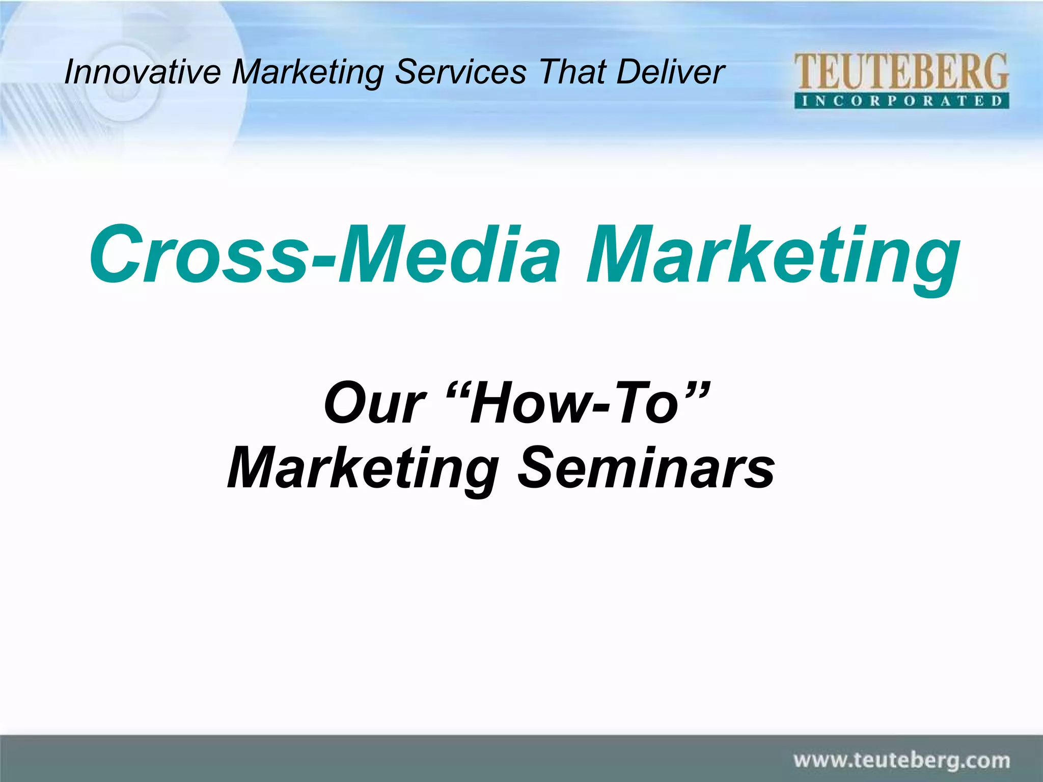 The document discusses cross-media marketing and provides an agenda for a marketing seminar on the topic. It includes examples of how different media like direct mail, email, personalized URLs, and SMS can be combined into an integrated marketing campaign. Case studies are presented and guidelines provided for developing a cross-media strategy and measuring results.