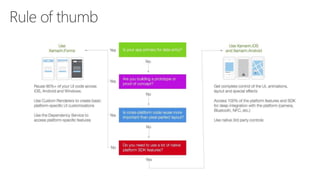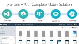 Xamarin allows developers to share C# code across platforms while building fully native mobile applications for iOS, Android, and Windows. It uses Xamarin.Forms to define user interface elements in a shared codebase while rendering these interfaces natively on each device. Developers can access native platform features and APIs through a common API to build cross-platform mobile apps with high performance.