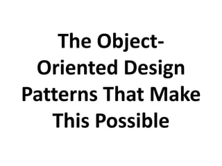 The document discusses cross-platform software design for developers and students, emphasizing a solution that allows one product to run on various computing devices by separating core functionality from platform-specific elements. It outlines a design approach using encapsulation, common interfaces, and several design patterns, ensuring that the game code remains unchanged while adapting to different platforms. Additionally, it presents a proof of concept game, 'Snow vs. Man,' showcasing the application of these principles.