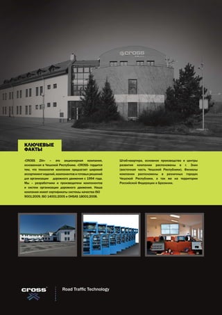 Компания 'cross' занимается разработкой и производством систем управления дорожным движением с 1994 года, предлагая высокотехнологичные решения, включая контроллеры светофоров и программное обеспечение для мониторинга. Система обеспечивает приоритет общественному транспорту за счет активной передачи данных в реальном времени и индивидуального подхода к решению задач клиентов. Весь процесс поддерживается сертификатами качества и адаптируется под требования городов, что гарантирует надежность и эффективность технологий 'cross'.