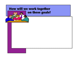 This document summarizes a discussion about collaboration to support all students' needs in a classroom. It notes that the goal is to share collective knowledge about student classes to better meet all students' needs. Key points included that intervention should focus on classroom support through collaborative problem-solving between professionals. The process involves teachers discussing each class's strengths, needs, goals and individual student concerns to develop targeted instruction. Collaboration helps make effective practices more widely available to accomplish extraordinary results for students.