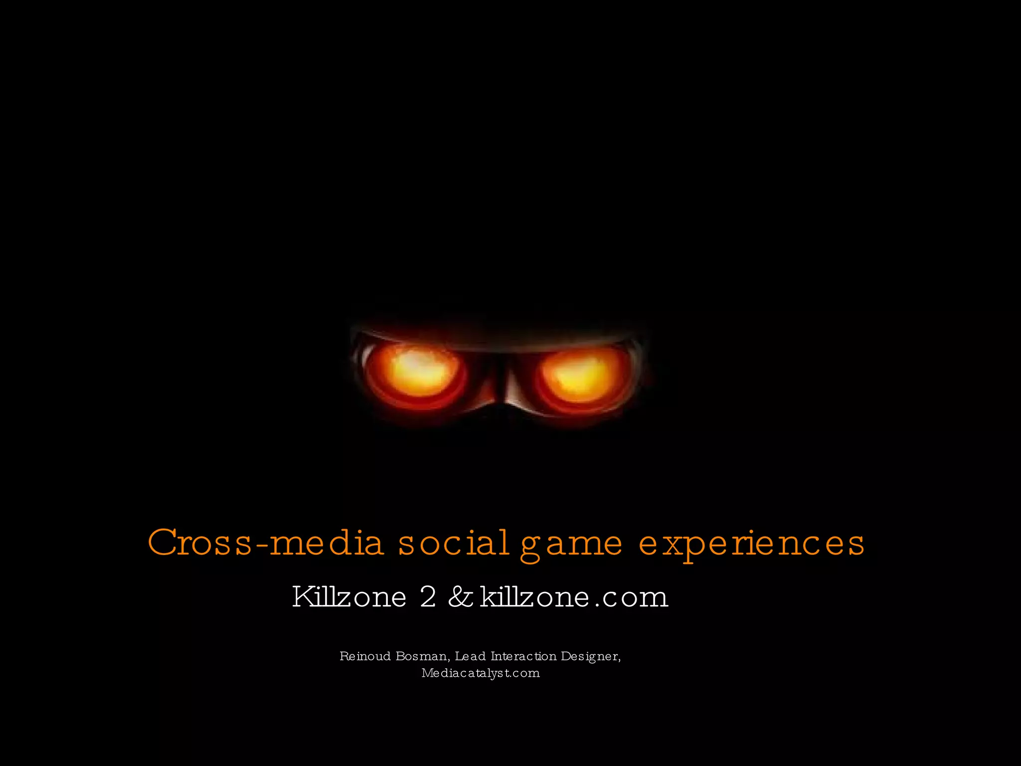 The document discusses the design and development of cross-media experiences for the game Killzone, emphasizing community building and player engagement through features like leaderboards and character development. It highlights the importance of emotional design to enhance gameplay and maintain player interest. Various roles within online communities are also detailed, showcasing how players can interact and share achievements to deepen their involvement with the game.
