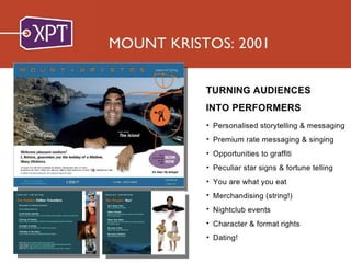 The document discusses the evolving landscape of digital media and cross-platform storytelling, emphasizing the need for adaptability in a rapidly changing environment. It highlights the significance of user-generated content, the role of technology, and the integration of various media forms, including live events and social platforms. The future is described as a space for innovation in storytelling, engagement, and audience interaction.