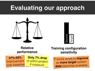 The document explores the role of build systems in software development, particularly focusing on the necessity of updating builds in response to source code changes, which can lead to build maintenance issues and breakages. It discusses the performance of build co-change prediction models, particularly emphasizing challenges related to small datasets, cross-project applicability, and the minority nature of build co-changes. The authors propose using transfer learning to enhance prediction accuracy and report improvements in model performance over baseline techniques in their experimental findings.