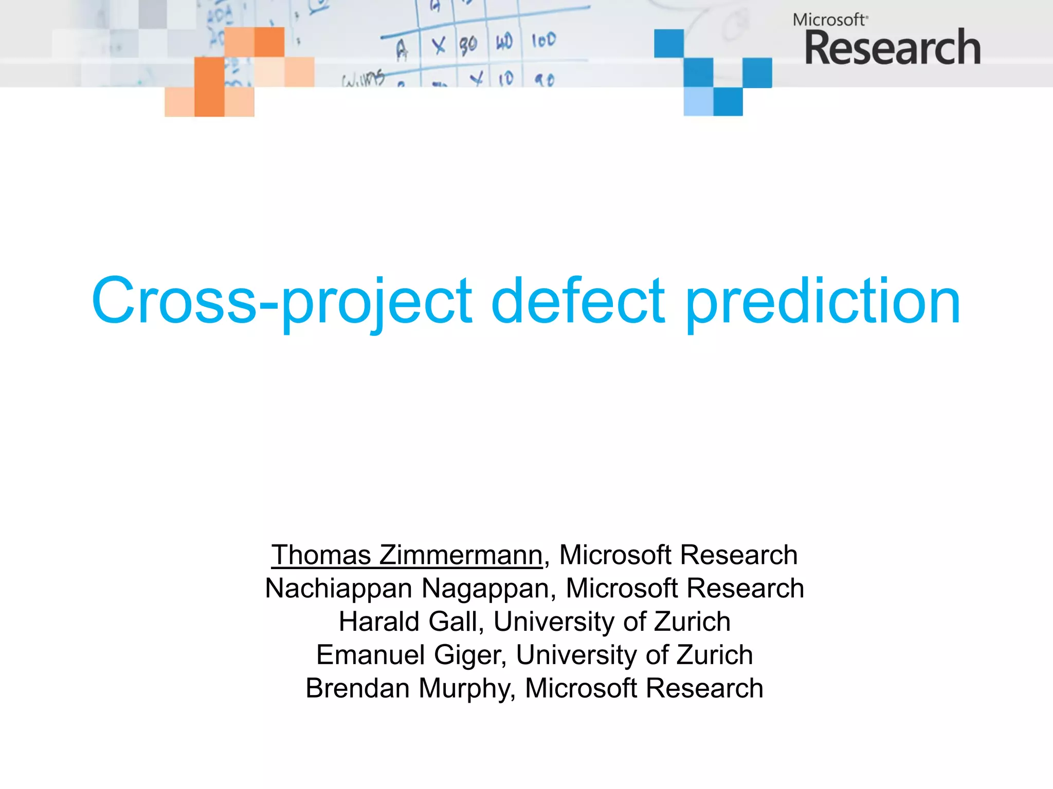 This document examines cross-project defect prediction, where a model trained on one project is used to predict defects in another project. In an experiment of 622 cross-project combinations across 12 systems, only 3.4% had successful predictions. However, certain project similarities like domain and characteristics like code reviews increased prediction precision and recall. Decision trees were created to help select project combinations where cross-project prediction is more likely to succeed based on characteristics like intended audience and pre-release bug metrics.