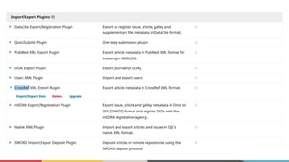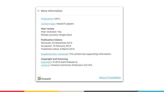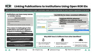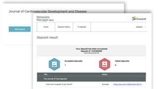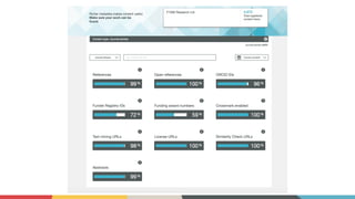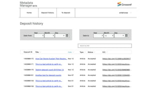 The document outlines Crossref's initiatives to enhance scholarly communications through metadata registration and management, detailing its organization, member participation, and various services such as DOI assignment, reference linking, and plagiarism detection via the Similarity Check. It emphasizes the importance of accurate and up-to-date metadata for publishers to improve content discoverability and facilitate proper citation practices. Additional community initiatives and support resources are provided to aid members in maintaining their metadata and leveraging Crossref's services effectively.