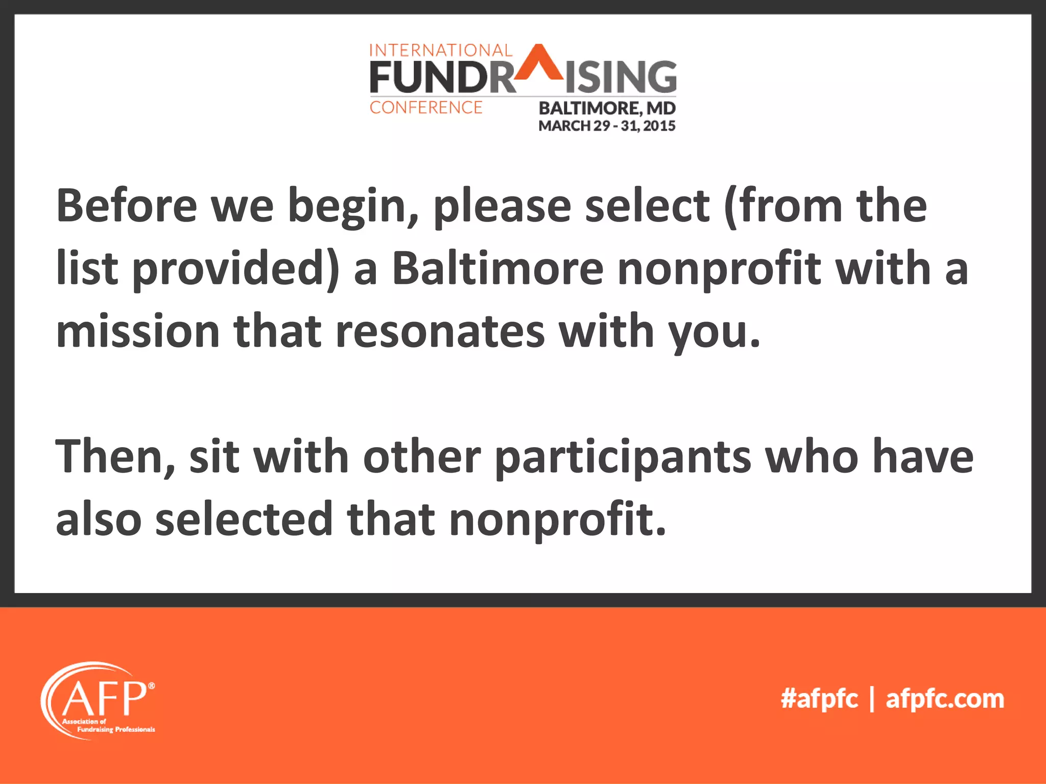 The document outlines a workshop on strategies for nonprofits to win crowd-sourced corporate and foundation grants, including identifying various crowd-funding opportunities, determining if they are suitable, and developing outreach plans; it thanks Baltimore nonprofits participating in a real-time $1,000 grant project and discusses the history and examples of crowd-sourced grants like those from Google, The North Face, and Tom's of Maine.