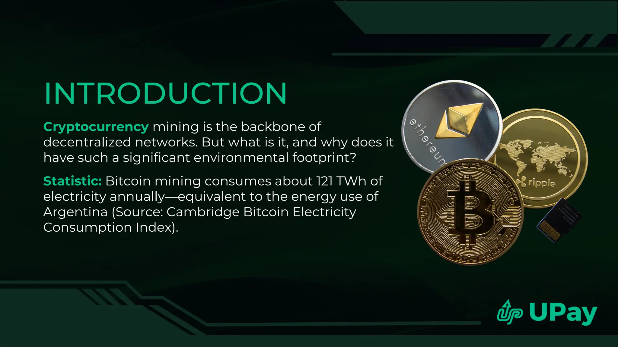 Cryptocurrency mining validates transactions on a blockchain through complex mathematical puzzles, consuming significant energy, with bitcoin mining alone using about 121 TWh annually. This process relies on proof of work (PoW), leading to high electricity consumption, as one bitcoin transaction uses more energy than 100,000 Visa transactions. Efforts to mitigate the environmental impact include shifting to renewable energy sources and transitioning to energy-efficient consensus mechanisms like proof of stake (PoS).